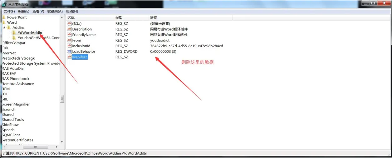 一些软件卸载后,调用office插件的注册表没有删掉。