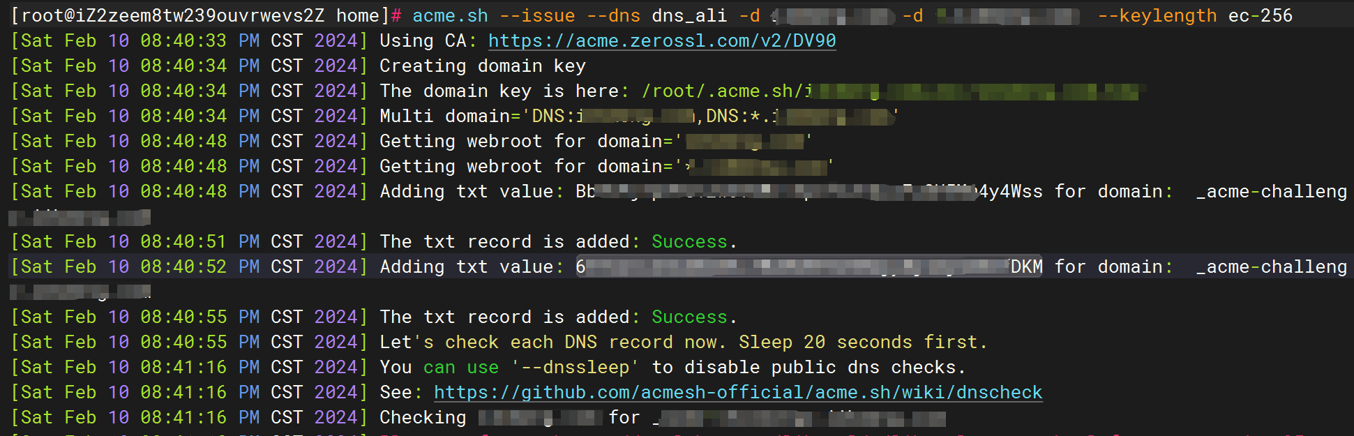 使用 acme.sh 自动签发 ZeroSSL 的 ECC 证书